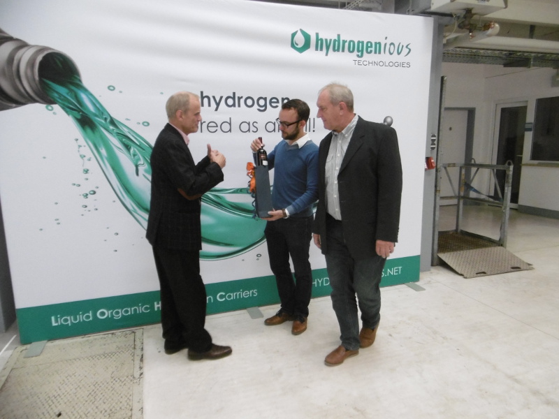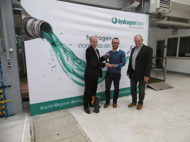Die Notwendigkeit sicherer, effizienter und skalierbarer Wasserstoffspeicher als multi-MWh Energiespeichersysteme wurde immer klarer – und flüssige organische Wasserstoffträgermaterialien (Liquid Organic Hydrogen Carriers – LOHC) stellten sich als die ideale Lösung heraus. Nach erfolgreicher Demonstration der technischen Machbarkeit in den Laboren der Universität, wurde aus der Idee Realität und Hydrogenious Technologies, ein weltweiter Pionier der LOHC basierten Energiespeicherung, wurde als Firma ins Leben gerufen.