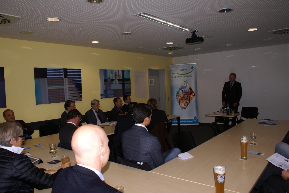 Mittelstandstreff "Medical Valley - wie alles begann" Im April 2013 feierte bereits das Gründungszentrum im Medical Valley, das Medical Valley Center (vormals IZMP) sein 10- jähriges Jubiläum. Von den Geburtshelfern des Medical Valley, Dr. Siegfried Balleis und, Herrn Dr. Peter Terhart, Financier der ersten Stunde, erfuhr das Auditorium wie die Vision zur Wirklichkeit wurde. Eine bundesweite Erfolgsgeschichte, die fortgeschrieben wird. An der Bar im Schwarz&Stark gab es im Anschluss der offiziellen Veranstaltung nette und interessante Gespräche Impressionen Vergrößerung: auf Miniaturansicht klicken