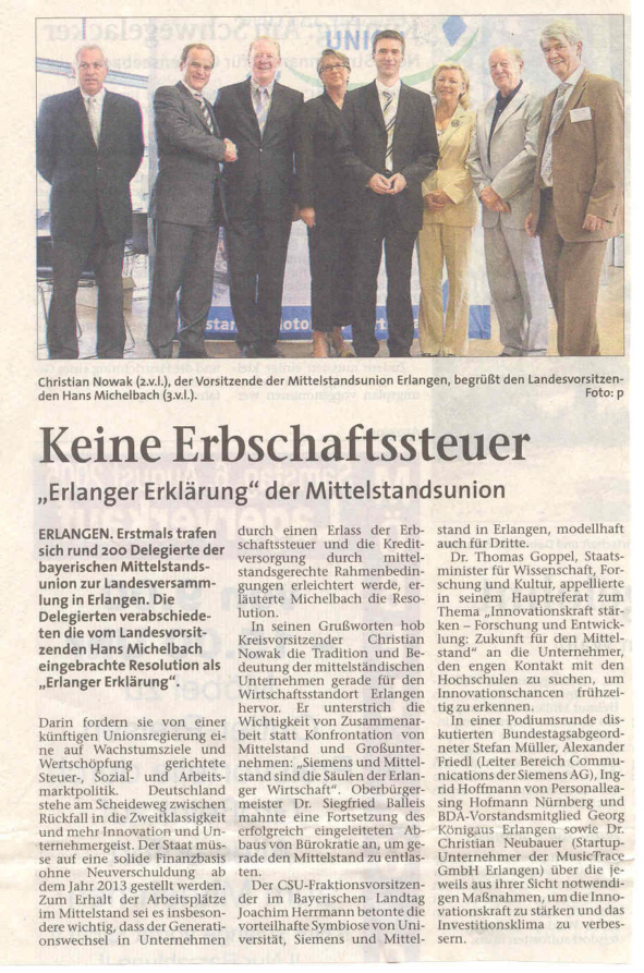 Pressemeldung Fränkischer Tagzum fränkischen TagJeder Tag ein Fränkischer Tag: Freitag, 05.08.2005 Veröffentlichung des Artikels im Internet von der Redaktion "Fränkischer Tag" genehmigt