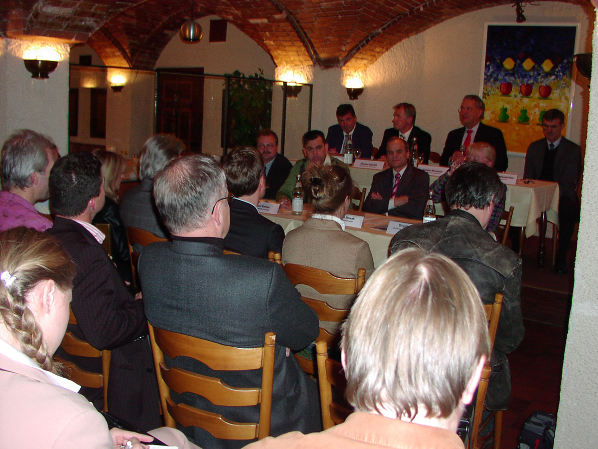 MU-Thema Ladenschluss - 16.11.2006Am 16.11.2006 fand eine Podiumsdiskussion zum Thema "Wie lange haben die Läden künftig geöffnet?" im Gewölbekeller des Hotels Bayerischen Hof statt.